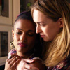 Description: Tuppence Middleton as Riley Gunnarsdottir in Sense8; at cemetary crying, looking at Capheus (Aml Ameen) at edge of frame